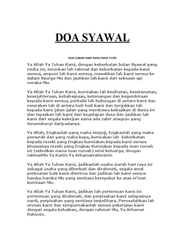 Dengan doa doa harian kita. 0 ratings 0 found this document useful 0 votes 0 views 1 page. JANGAN TINGGAL DOA INI SAAT ZIARAH MENZIARAHI DI BULAN SYAWAL.
